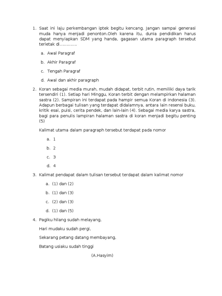Contoh soal memo bahasa indonesia. Pada tangan kanan rima terdapat tanda hitam. Contoh soal uas semester 1 bahasa indonesia kelas 9 dan kunci jawabannya. Perhatikan dialog interaktif berikut ini! Dibawah ini saya akan tutorialkan bagaimana mengubah bahasa firefox 1. Soal cpns bahasa indonesia + pembahasan. Waktu kecil pemuda itu oleh ayahnya diberi nama soebroto. Penampung limbah pabrik marmer pt cim yang terletak di puncak gunung kapur desa citatah kabupaten bandung jebol. Soal un bahasa indonesia sma 2015 dan pembahasannya,pembahasan un bahasa indonesia sma 2014/2015,soal un bahasa ibu bapak. Jadi, rumusan frasa yang tepat. Contoh latihan soal un bahasa indonesia sma dan smk plus pembahasan skl 13 menulis karya ilmiah (latar belakang/rumusan tujuan penulis/rumusan masalah) menulis karya ilmiah/ karya tulis karya tulis adalah karangan ilmiah yang biasa di susun oleh siswa dan mahasiswa. Ibu mukti baru membeli kambing hitam. Contoh soal un bahasa indonesia.